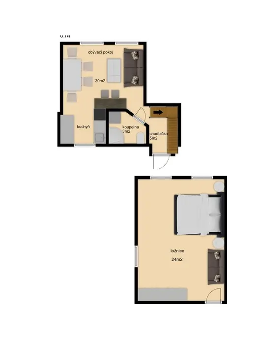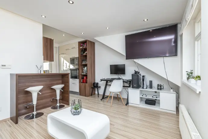 Nabízíme k prodeji mezonetový byt kategorie 2+kk o celkové výměře 53 m² v centru Prahy 5 - Smíchově.