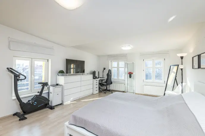 Charakter bydlení: Poslední patro historického zrekonstruovaného domu, které bylo vystavěno v roce 2010. Okna nad střechami s ohromujícím výhledem ve vás vyvolají pocit výjimečnosti. V bytě s klidnou atmosférou si můžete splnit svůj sen o unikátním bydlení. Byt je v osobním vlastnictví. Koupi lze financovat hypotékou.